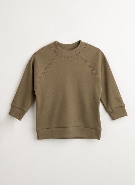 A modelagem soltinha oversized, agora com mangas raglan e gola mais fechadinha, cria um caimento confortável e atual, que envolve sem apertar.
