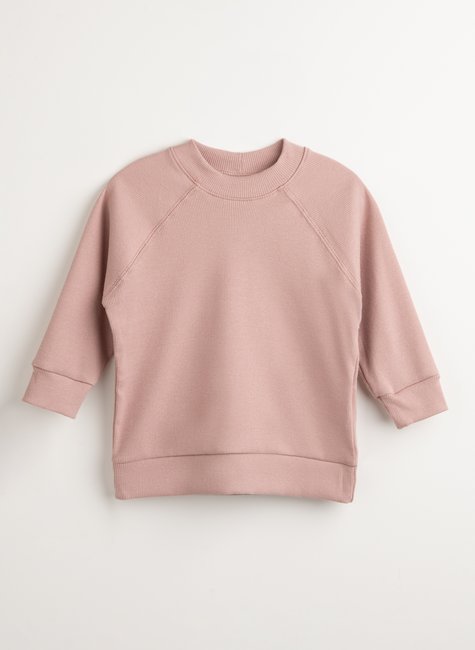 A modelagem soltinha oversized, agora com mangas raglan e gola mais fechadinha, cria um caimento confortável e atual, que envolve sem apertar.