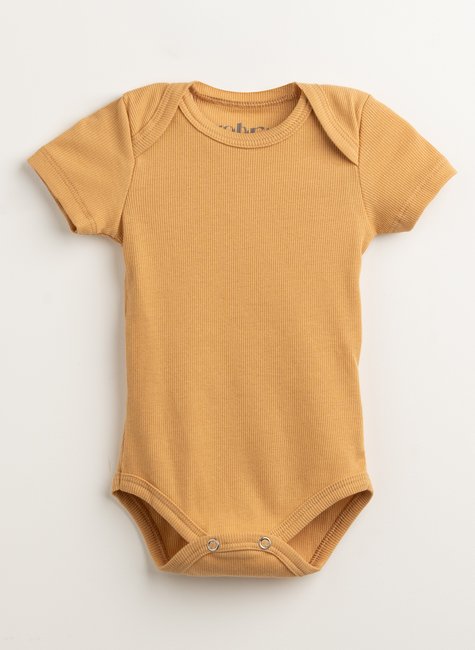 O Body Bebê Canelado Gold Manga Curta Amarelo Queimado é uma escolha fresquinha para os dias quentes ♡