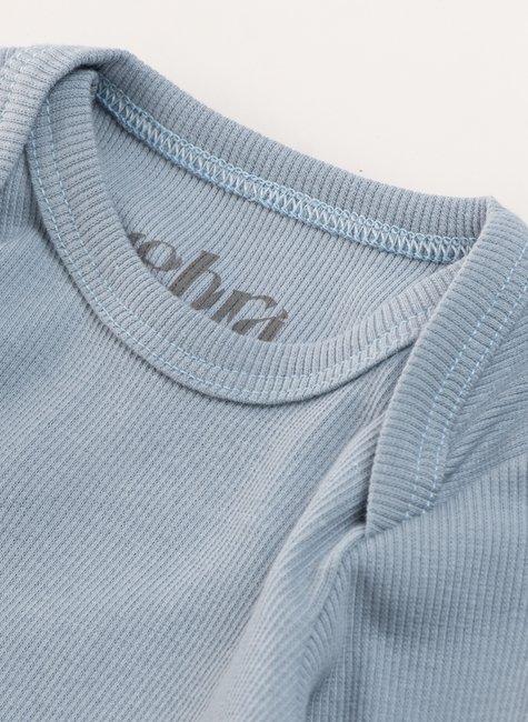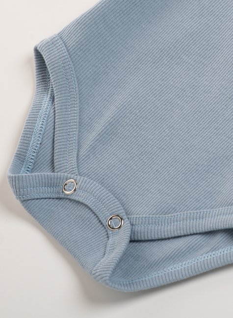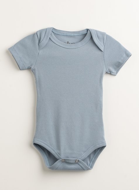 O Body Bebê Canelado Gold Manga Curta Azul Bebê é uma escolha fresquinha para os dias quentes ♡