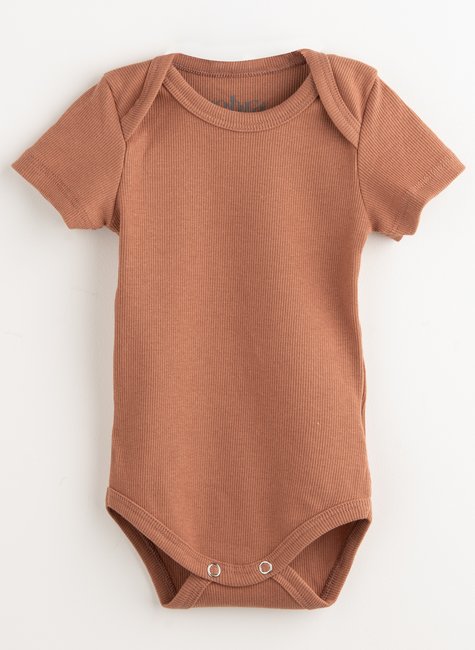 O Body Bebê Canelado Gold Manga Curta Mocha é uma escolha fresquinha para os dias quentes ♡