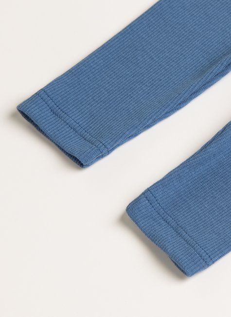 Delicado e sofisticado, com estrutura canelada em algodão penteado de fibra longa e elastano. Contém fio lycra que acompanha os movimentos do corpo, permitindo liberdade para os bebês.