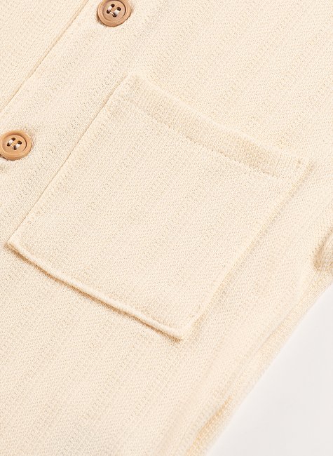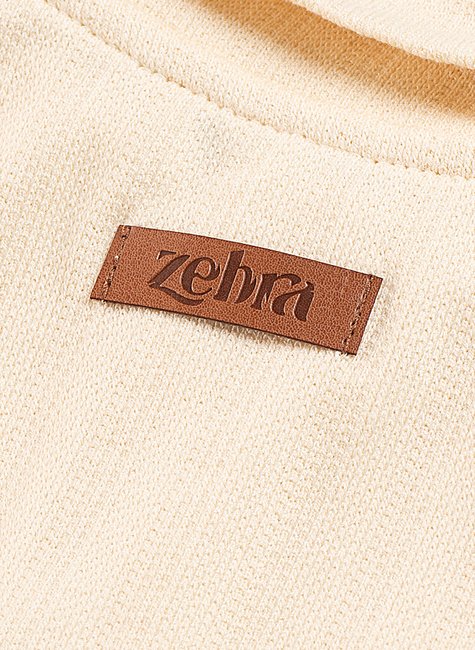 Os botões de madeira trazem um detalhe natural e sofisticado, enquanto o bolso frontal adiciona praticidade. A etiqueta em courino da Zebra confere um toque de charme e identidade à peça.