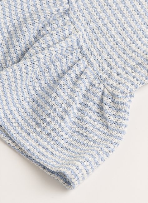 O tecido texturizado em tons suaves envolve a peça com um ar sofisticado, com um toque de encanto ♡