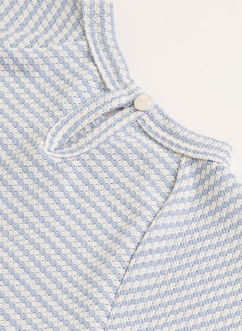 As mangas raglan oferecem um caimento moderno e despojado, e a abertura em gota nas costas, fechada por um pequeno botão perolado, é um detalhe que guarda um charme especial.