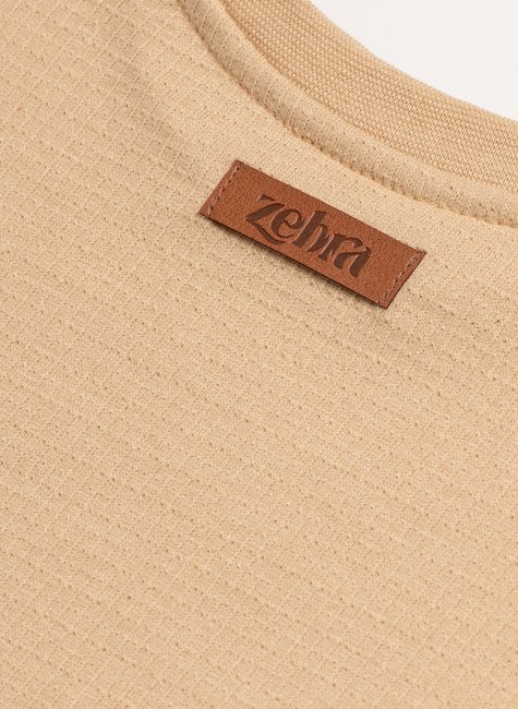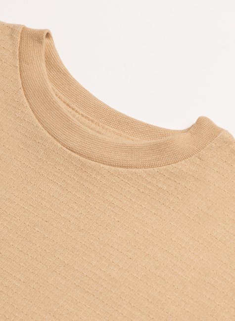 O tecido macio, com textura sutil, realça a sensação de leveza, enquanto a cor mel traz um toque suave e natural.