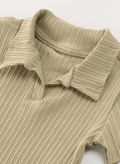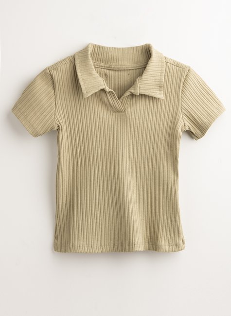 O design com gola polo traz um charme clássico e atemporal, enquanto o tecido texturizado adiciona um toque moderno e delicado ao visual.
