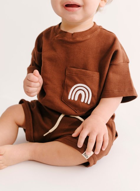 A textura traz um toque fashion e elegante ao conjunto, e o bordado de arco íris é responsável pela autenticidade do mesmo! A estampa é uma fofura, e um lembrete de que os pequenos são o toque de cor e alegria nas nossas vidas!