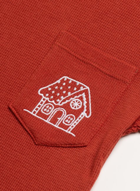 A textura traz um toque fashion e elegante, enquanto o bordado de casinha adiciona delicadeza, charme e o clima acolhedor da temporada mais mágica do ano. Um detalhe inestimável, que reforça a autenticidade e a fofura dessa peça pensada com tanto carinho.