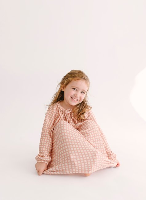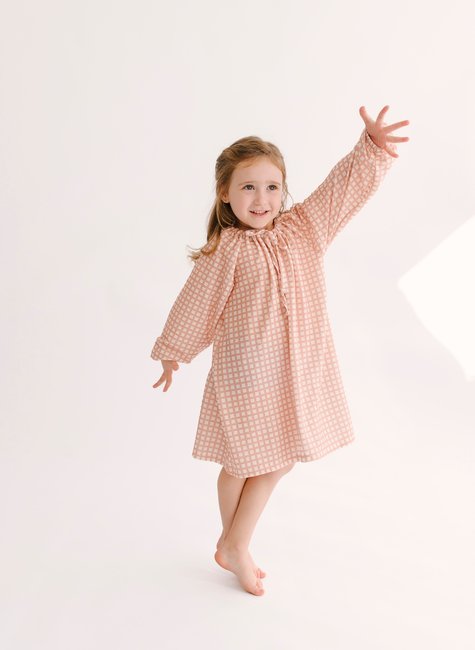 O vestido conta com elástico nos punhos, assegurando o caimento correto e dando destaque à modelagem soltinha.